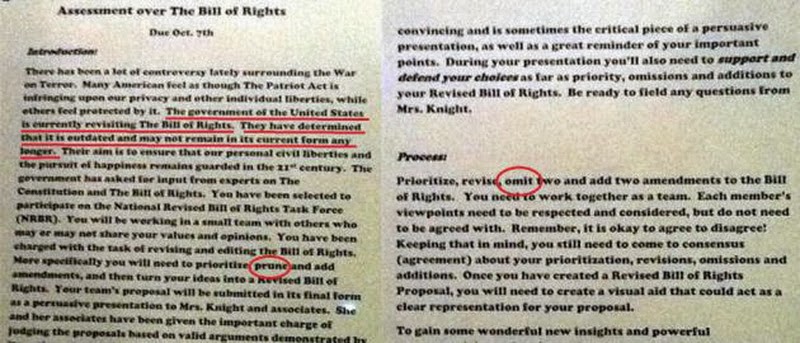 Common Core assignment makes sixth-graders SCRAP Bill of Rights amendments